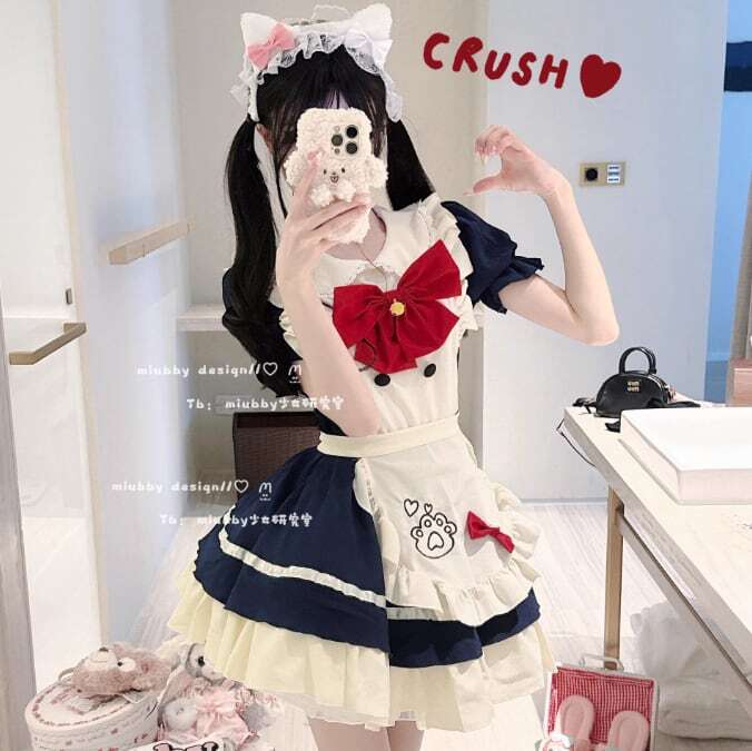 甘ロリ♡うさちゃん刺繍&カチューシャ付きメイド服 kos60★